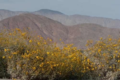 Brittle-Brush and Mountains from Behind Visitor Center