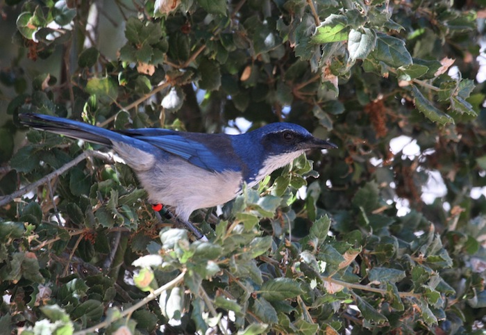 Years of grazing and feral pigs had devastated the natural landscape of the island. The pigs have been removed through hunting and native plants are returning. Acorns buried by the jays sprout into native Oaks. The Santa Cruz Island Scrub Jay is North America’s only endemic island bird. It is larger and bluer than its relative, the common Western Scrub Jay. To read more go to the LA Times article: Taking a rare jay under their wing