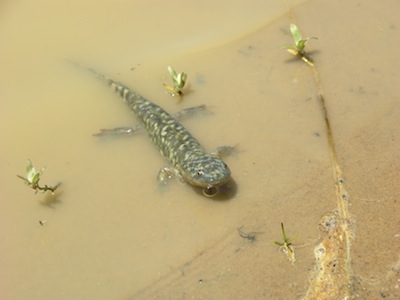Wildlife seen were on land: a very long (3+ ft) gopher snake crossing the road and young tiger salamanders who had just metamorphosed from the aquatic larval stage, emerged from the edge of Olcott Lake, and were on their way to begin the rest of their development on land to become a fully sexual adult 4 years hence. I am attaching a photo of one — you can see that they haven’t begun to look like the grown adult yet. You can’t just run into one by chance like with the gopher snake; they were part of a study conducted by researchers at UC Davis who were kind enough to let me photograph one. They are only out in the early morning hours when it’s wet and dewy and before it’s light.