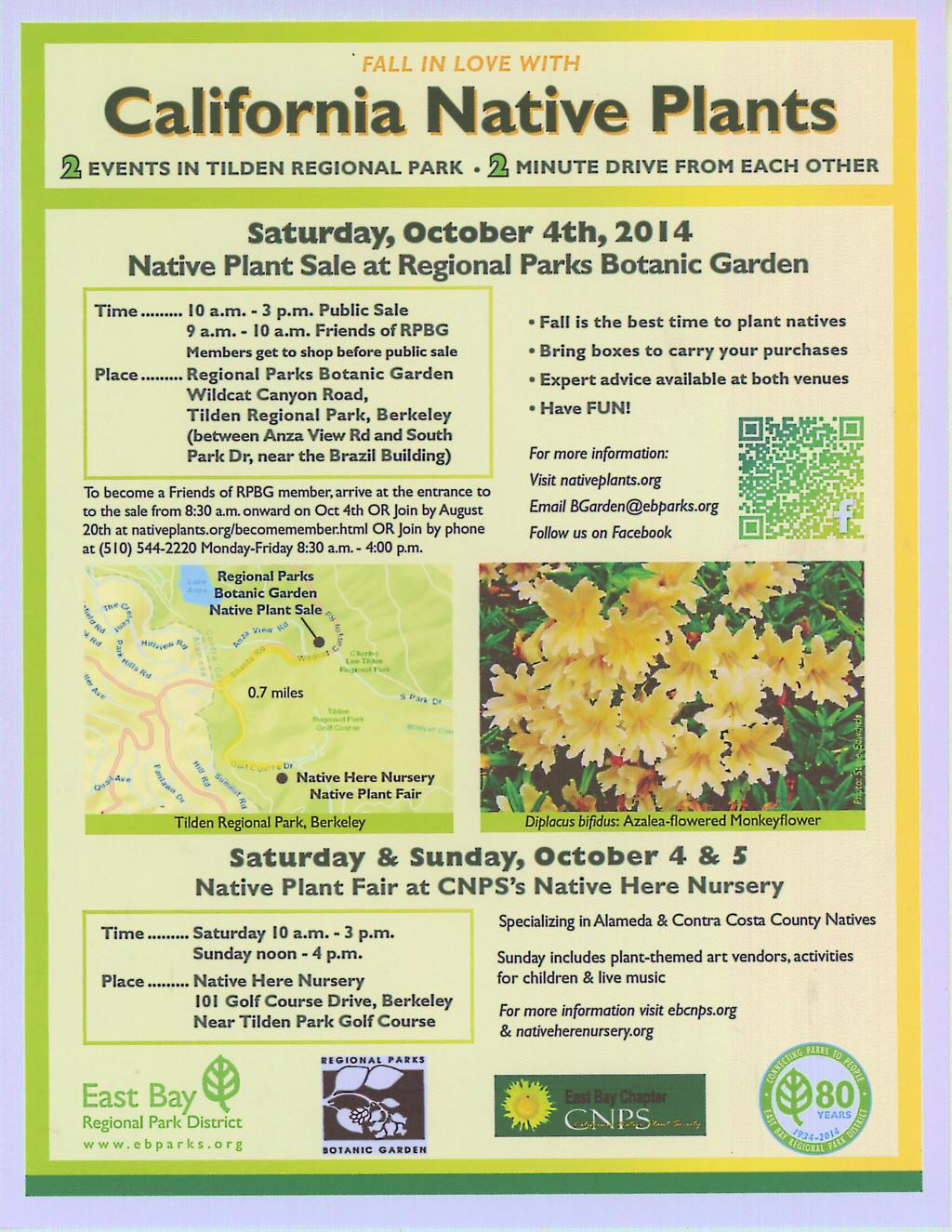 Two Berkeley Native Plant Sales 10/4/14 and 10/5/14 -Updated