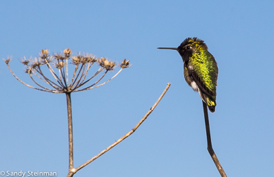Waterbirds were out in great numbers on the Richmond part of the Bay Trail. We saw Fifty-three different species along our four mile walk from Pt. Isabel to Shimada Park through Marina Bay and back to Pt. Isabel. It was a high tide and we managed to find one Ridgway’s Rail to the delight of our S.F. visitors. An Osprey flew overhead as we were finishing up. I also found one Anna’s Hummingbird who was a very cooperative photo subject. Although we saw a large number of Common Goldeneye they were all female. Today’s Bird List: Richmond Bay Trail Bird List 1/3/15.