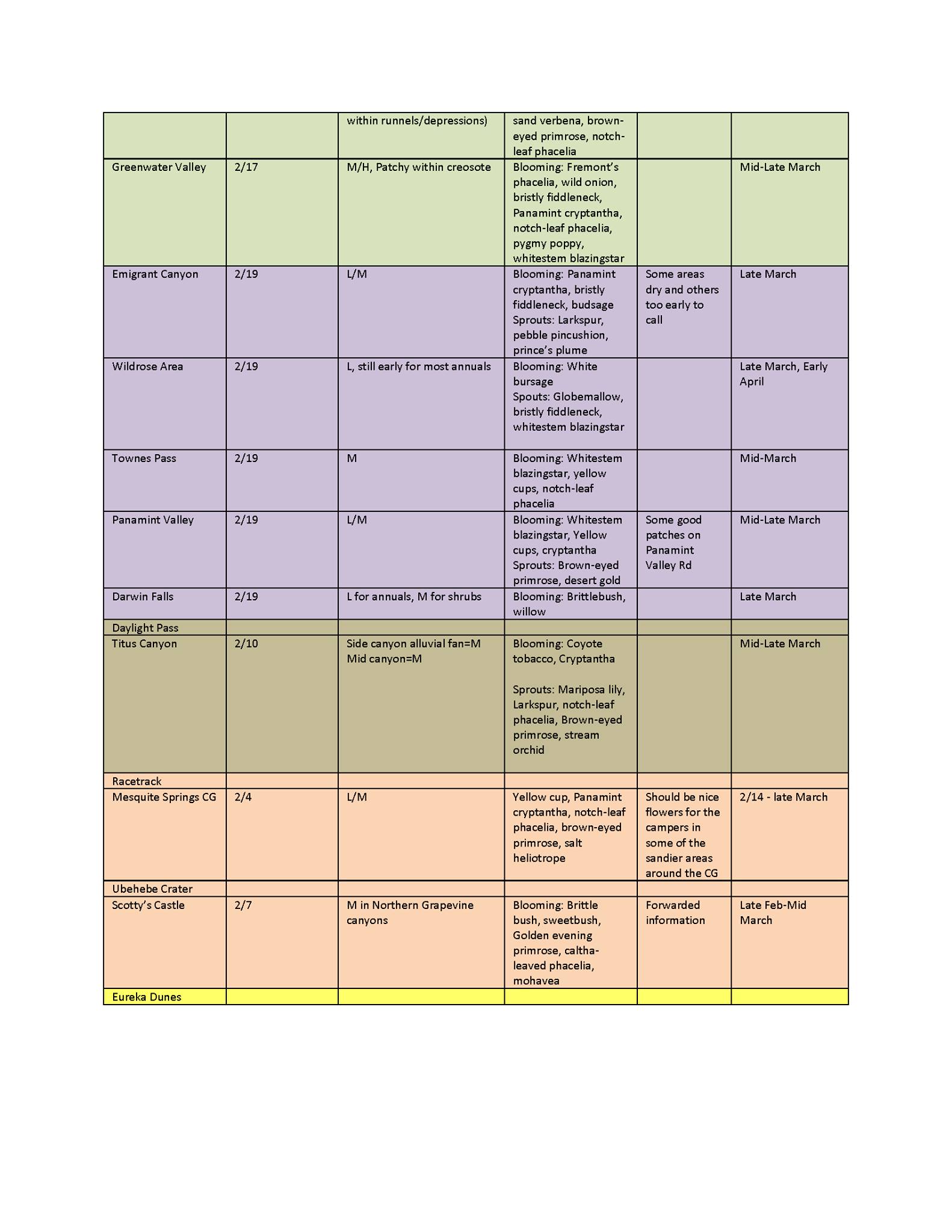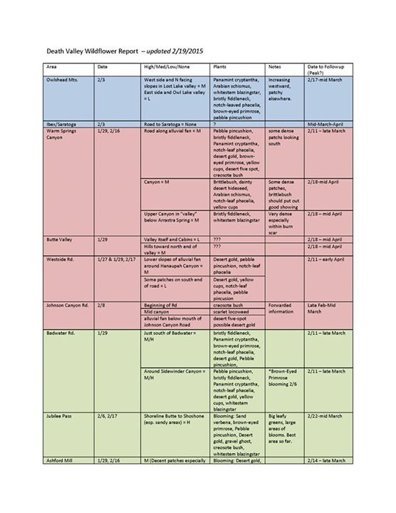 Click read more to see Death Valley National Park Bloom Charts. If difficult to read go to Death Valley National Park and click on the charts there.