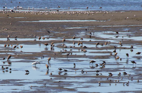 Elsie Roemer Bird Sanctuary is at the east end of Marsh Beach in the town of Alameda. It harbors aquatic birds and other salt marsh creatures. There are large numbers of shorebirds  there including Double Crested Cormorants, Willets, Marbled Godwits, Western Sandpipers, Least Sandpipers, Dowitchers,  and  3 plover species. Also seen in large numbers were Brown Pelicans. Three species of Terns were also observed.