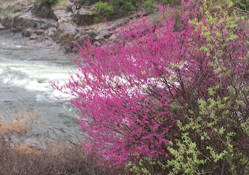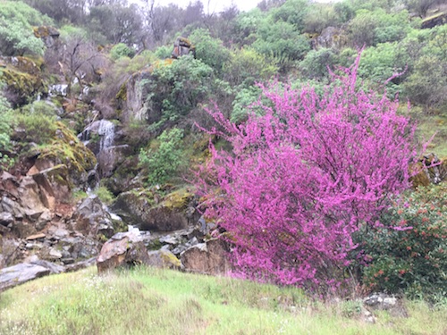 Many Redbuds are now in bloom on Hwy. 14o East of Midpines.