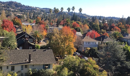 A very California Fall Color photo. An iPhone photo ofSouth Berkeley fall color street trees and palm trees!