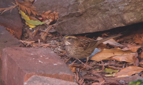 The last two weeks we have had a rather rare visitor to our backyard in the North Berkeley Flatlands. A White-throated Sparrow.