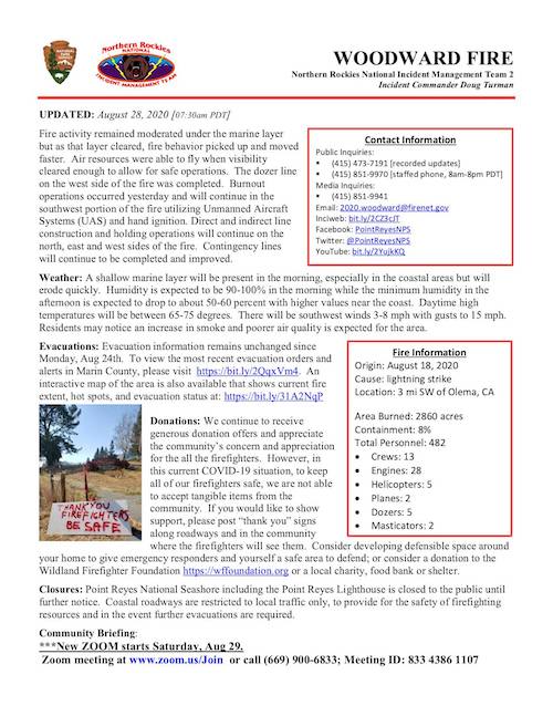 Pt. Reyes: Woodward Fire Update 8/28/20