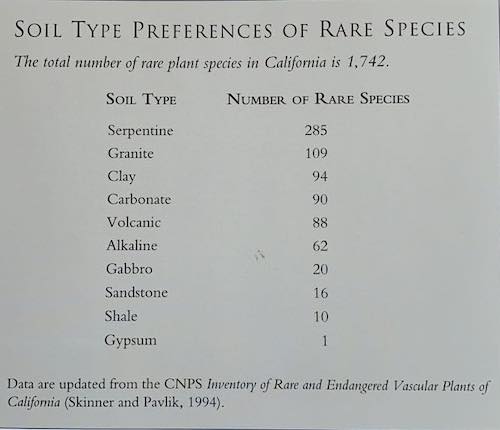 A Chart from the California Native Plant Society showing the soil preferences of rare California plants