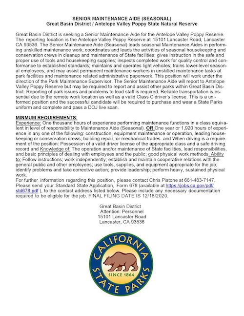 Job Opportunity: Senior Maintenance Aide Antelope Valley