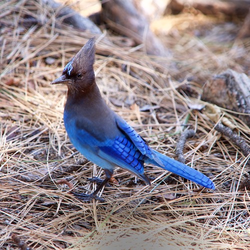 I had the unique experience of watching several Stellars gang up on a grey squirrel to steal his food. The ensuing chase among trees was an amazing, and oh so funny, sight to see, the jays, of course, won.