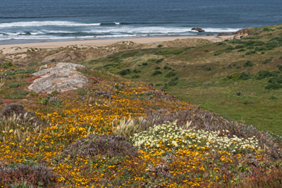 Cream Cups and Goldfields at Kehoe Beach