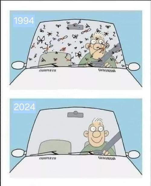 Thirty years ago, car windshields would be covered with insects after long drives. While it might seem like a relief for those who dislike cleaning, the alarming decline in insect populations tells a different story. Scientists attribute this 50% drop since 1970 to industrial agriculture, habitat destruction, and pesticide use, all of which lead to ecosystem collapses. Younger generations might not notice, but if you ask someone older, they can confirm this drastic change.
